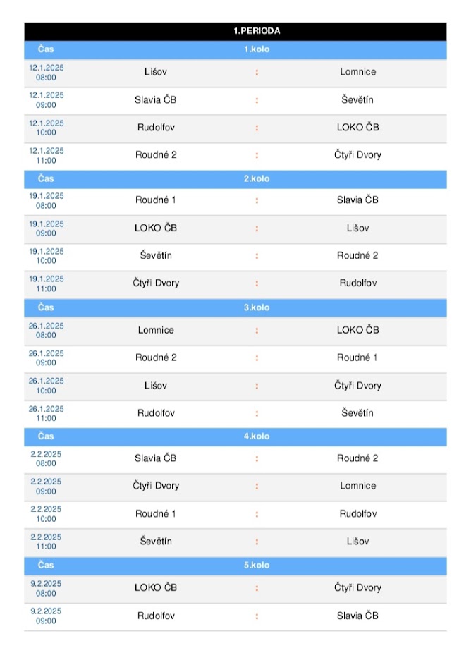naši mladší žáci se opět letos účastní Zimní ligy, která se koná na UMT v Lišově. Hraje se 2x 25 minut. Turnaj byl zahájen, resp. naši borci hráli svůj první zápas 12.1.2025 v nepatrném oslabení o hráče, kteří v té době byli na školním lyžařském kurzu. První zápas jsme odehráli proti domácím. Stručné hodnocení zápasu nám nastíní trenér Michal Šachl: