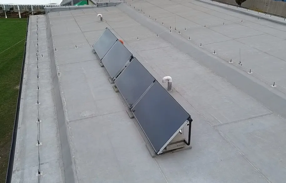 V průběhu příprav byl koncept přepracován a bylo navrženo rozsáhlejší řešení pro ohřev teplé vody i pro v nedávné minulosti rekonstruované zázemí šaten pro hostující týmy. Vše samozřejmě primárně pro ohřev vody slunečními paprsky a až v momentě kdy svítit nebude nebo nebude svítit dostatečně, tak bude voda ohřívána pomocí stávajícího plynového kotle. Rozšíření návrhu mělo za důsledek i dražší vysoutěženou cenu ve výběrovém řízení, kterou jsme výsledku překročili o cca 75 tis Kč. Navýšení ceny budeme nuceni krýt vlastními prostředky, avšak navýšené investice určitě netřeba litovat, jelikož se nám v budoucnu zcela jistě vrátí v podobě úspory na spotřebě energií.