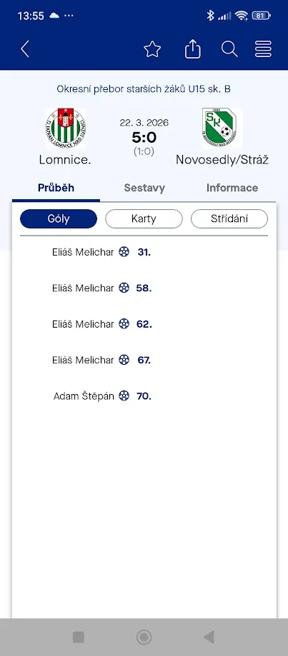 Starší žáci v neděli 22.3.2026 zahájili jarní část sezony 2025-2026 vysokou výhrou 5:0 proti týmu Novosedly/Stráž. Skvělým gólovým tancem se blýsknul Eliáš Melichar. Doufáme, že tato krasojízda bude pokračovat.